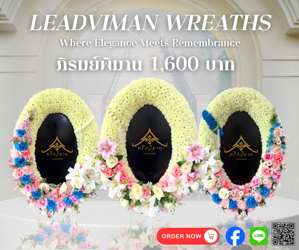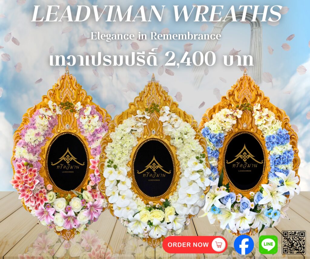 เทวาเปรมปรีดิ์ | พวงหรีดลายไทยอลังการ โทนสุภาพพรีเมียม