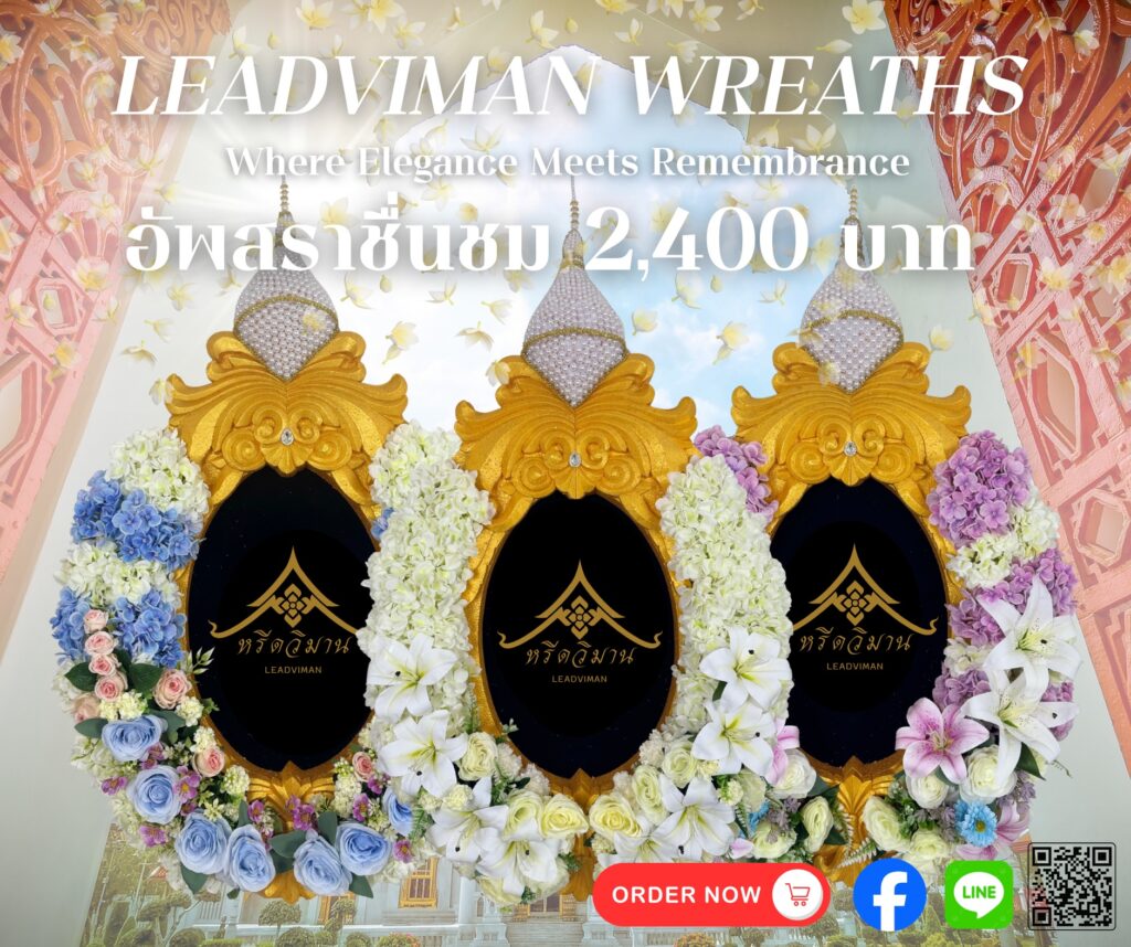 อัพสราชื่นชม | พวงหรีดพรีเมียมลายไทย ยอดประดับมุก